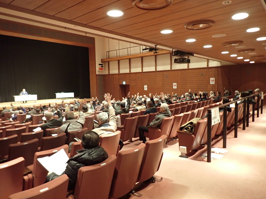 総代数79名のうち出席者74名(書面議決14名を含む)のもと、提出された15議案について慎重審議がなされ、原案のとおり承認・可決されました。