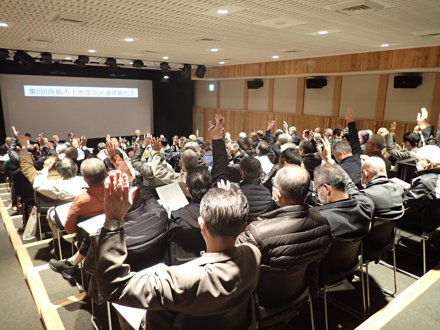 来賓に砺波農林振興センター宮﨑次長をお招きし、南砺市土地改良区第5回通常総代会が南砺市クリエイタープラザ桜クリエで開催されました。