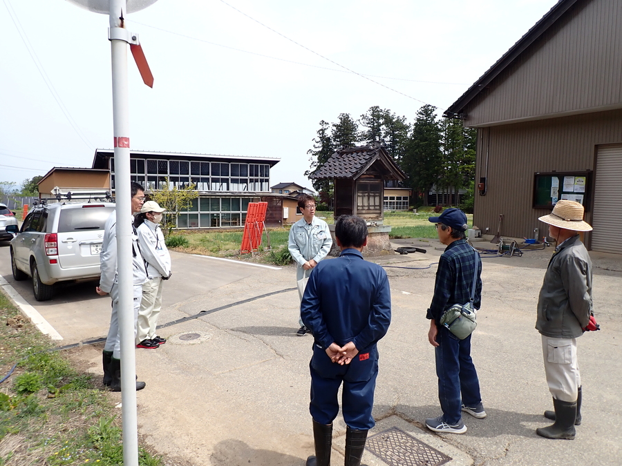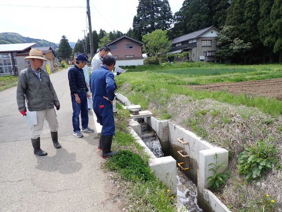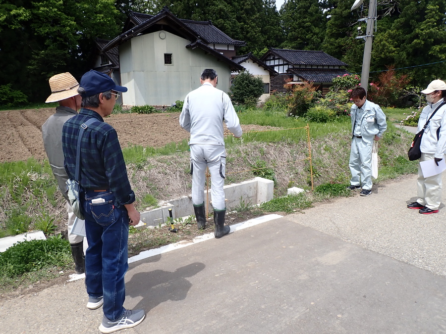 盛新地区では、県・南砺市・土地改良区の職員が地域住民とともに、転落する可能性がある用水路周辺の危険な箇所の点検を行いました。危険箇所には、歩道と用水路の間にロープを張り事故防止に向けた対策をしました。